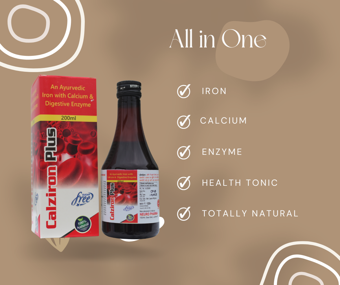 Calziron Plus – Ayurvedic Iron Tonic with Calcium & Digestive Enzyme (200 ml)
