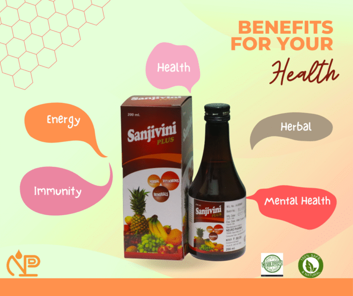 Crafted by Neuro Pharma, Sanjivini Plus is a powerful blend of time-tested herbs, fortified with multivitamins and minerals to improve digestion, increase vitality, and restore inner balance. Whether you’re recovering from fatigue, dealing with nutritional deficiencies, or simply aiming to enhance your overall well-being, this syrup is your trusted daily health companion.
